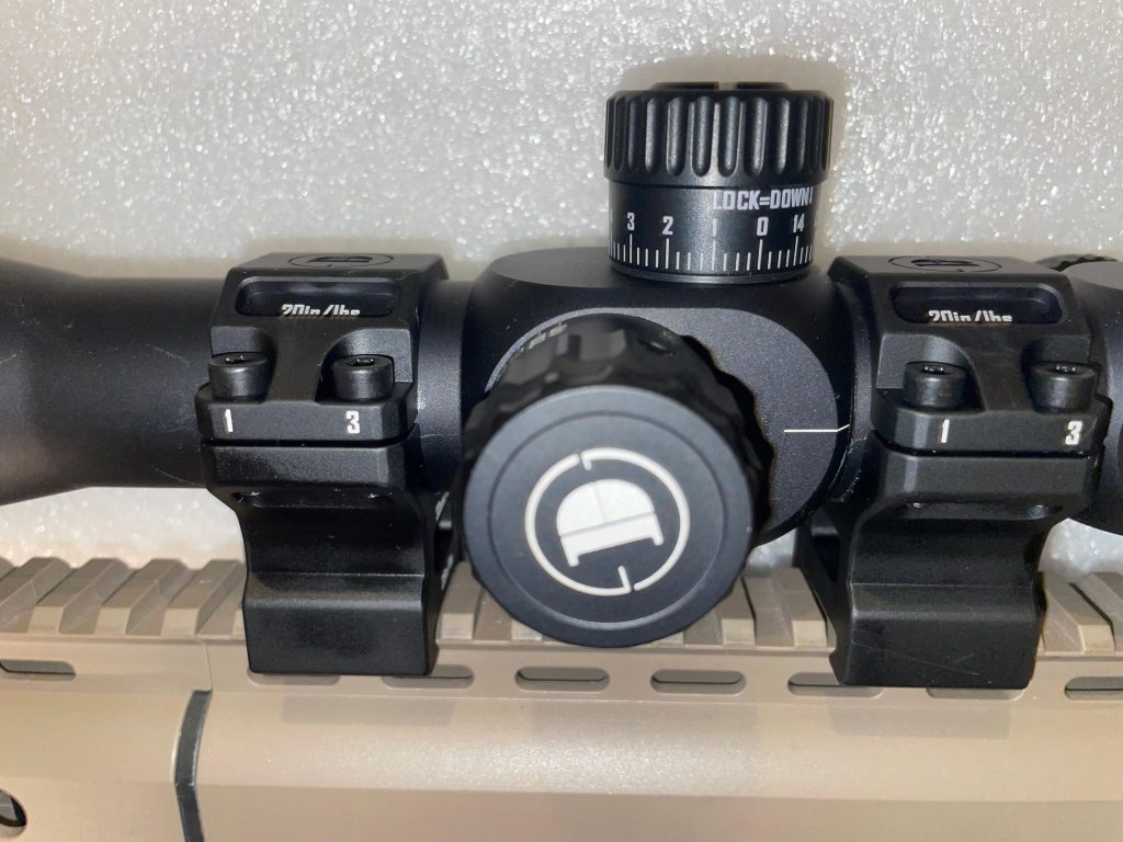 ce qui permet en théorie de compenser la chute d’une .22 LR jusqu’à 200 mètres sans utiliser les tourelles.
